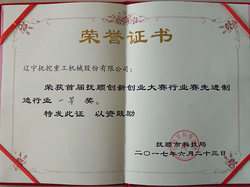 2017年6月,撫挖重工第二代CMD850履帶式TRD成槽機產(chǎn)品榮獲撫順市首屆“雙創(chuàng)大賽”一等獎